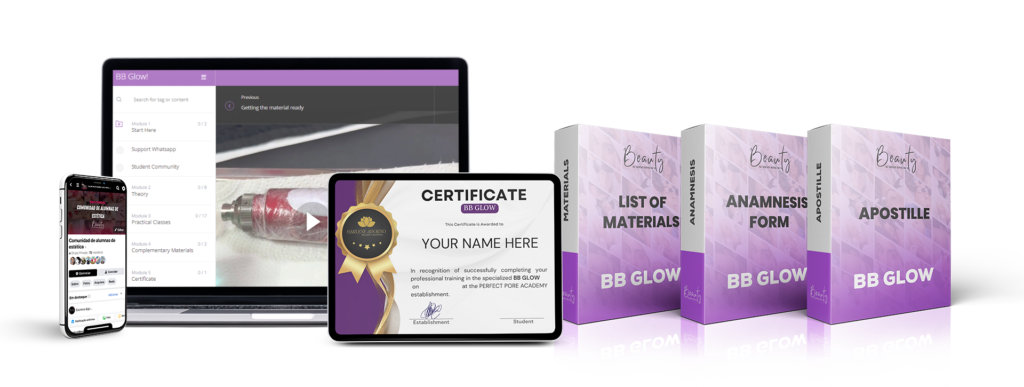 You will learn, step by step, from scratch and at your own pace, how to perform the professional BB Glow procedure to stand out in your city, even if you have no previous experience.